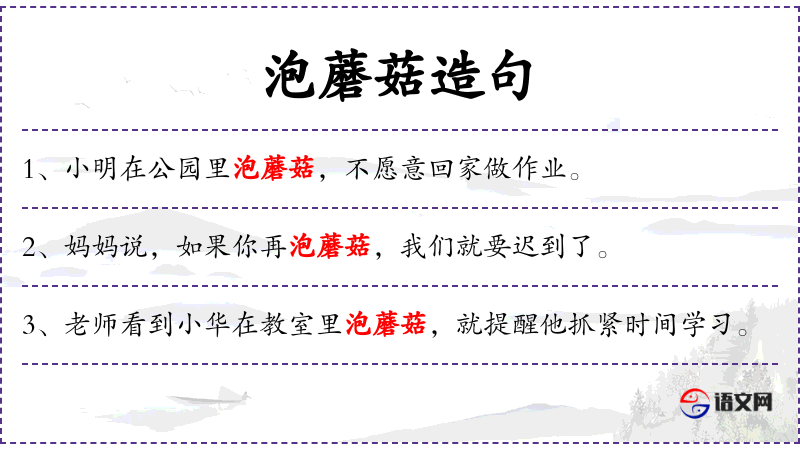1. 【泡蘑菇】 - 故意东拉西扯或纠缠来拖延时间。