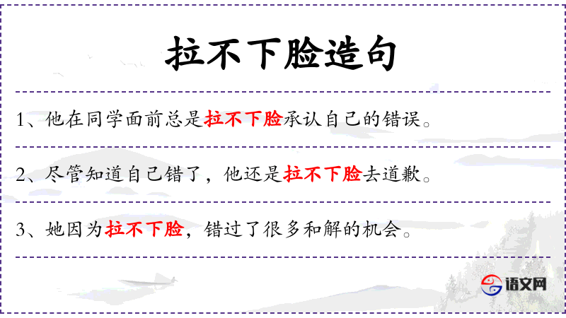 - 拉不下脸:这是一个汉语成语,意思是因面子问题而难以做出某种行为,特别是承认错误或失败。