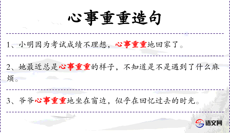 1. 【心事重重】 心里挂着很多沉重的顾虑。