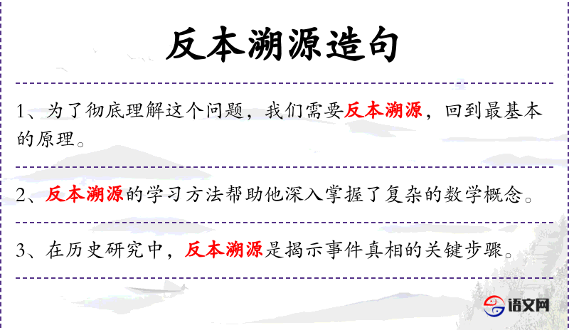 - 反本溯源:指追溯事物的根本来源,探究其起源和发展过程。