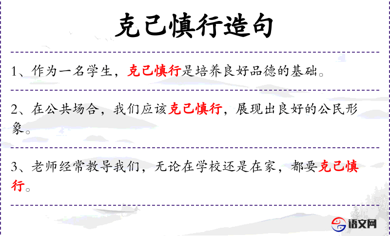 句子:“作为一名学生,克己慎行是培养良好品德的基础。”