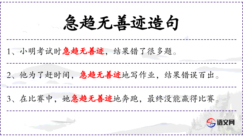 - 急趋无善迹地:形容词短语,表示匆忙且没有留下好印象。