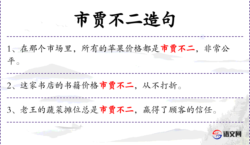 - 市贾不二:指市场上的价格是唯一的,没有其他价格。