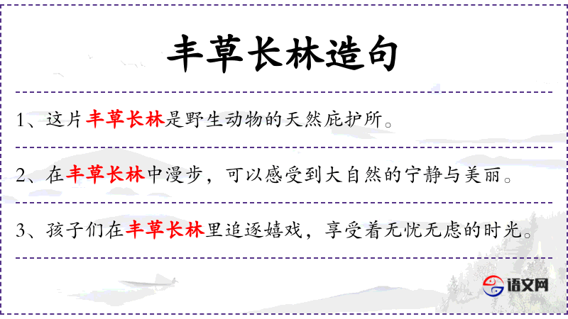句子:“这片丰草长林是生态旅游的热门目的地之一。”