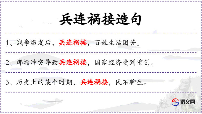 - 兵连祸接:形容战争连续不断,灾祸接踵而至。