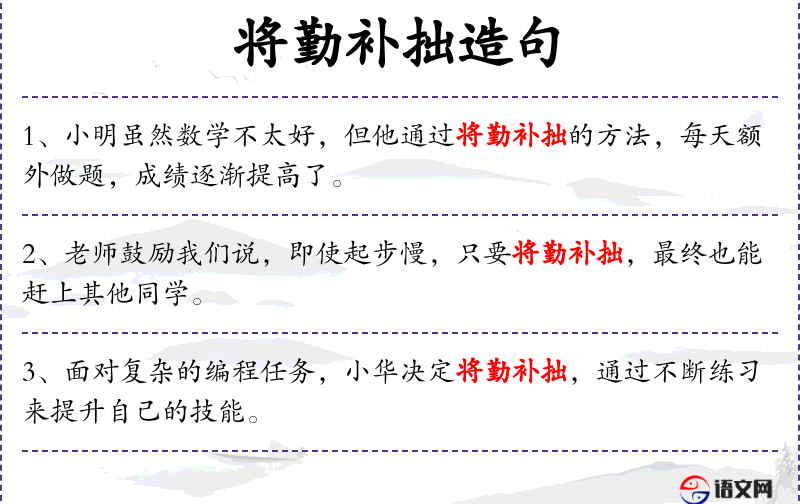 - 将勤补拙:通过勤奋努力来弥补不足。