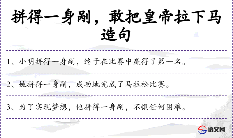 - 成语/典故:“拼得一身剐”类似于成语“拼死拼活”,都表达了极大的努力和牺牲。