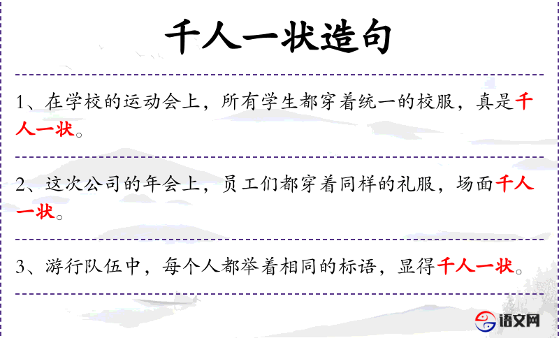 - “千人一状”:形容很多人看起来都一样,但每个人的表情不同,表达了个体差异。