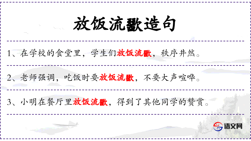- 在课堂上,老师详细解释了放饭流歠的重要性。