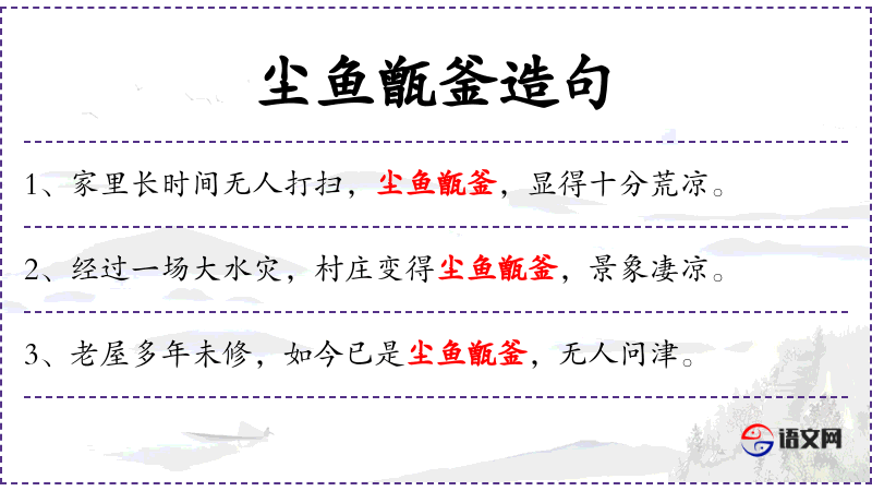 - 宾语:“尘鱼甑釜,荒废不堪”