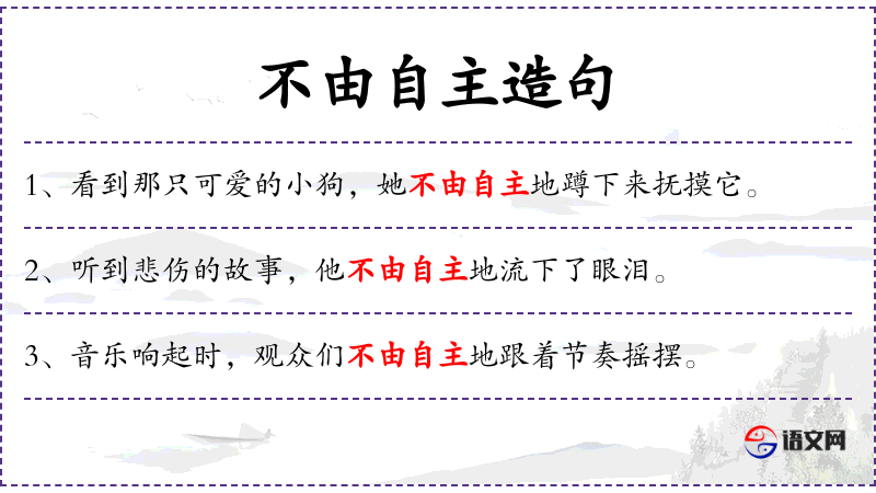 - 不由自主地:副词短语,表示行为不受意识控制。