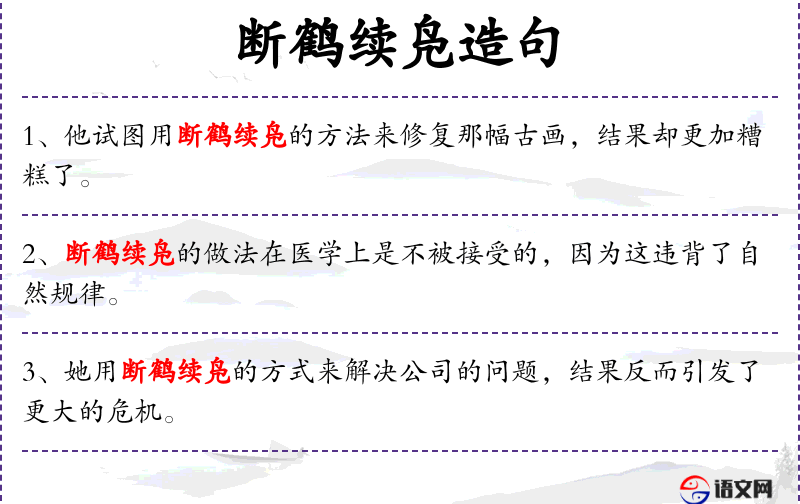 “断鹤续凫”这个成语源自**古代,比喻不合理的措施或做法。在医学领域使用这个成语,强调了这种做法的不合理性和不可取性。