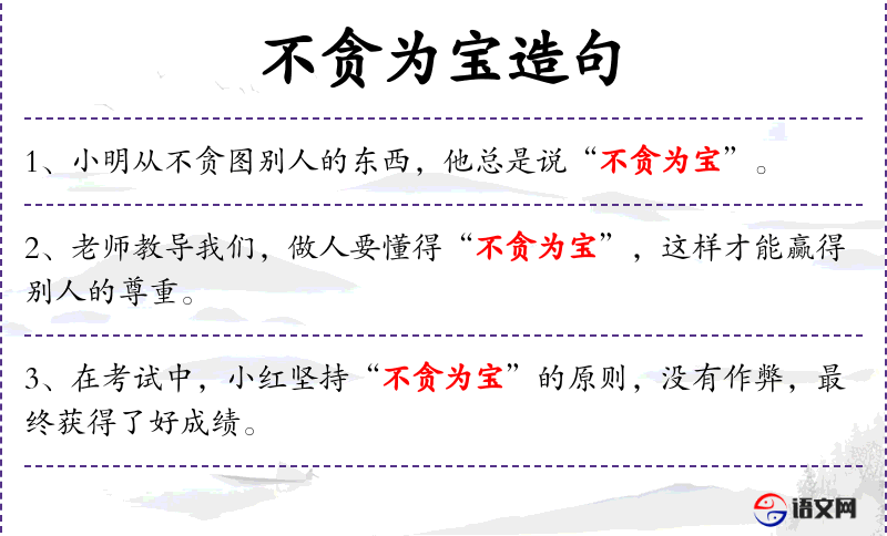 - 不贪为宝:成语,意为不贪婪是宝贵的品质。