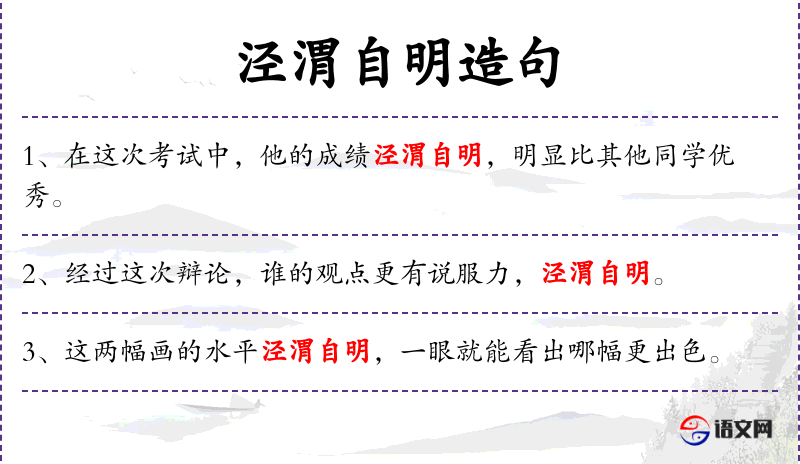 4. 【泾渭自明】 - 比喻界限清楚或是非分明。同“泾渭分明”。