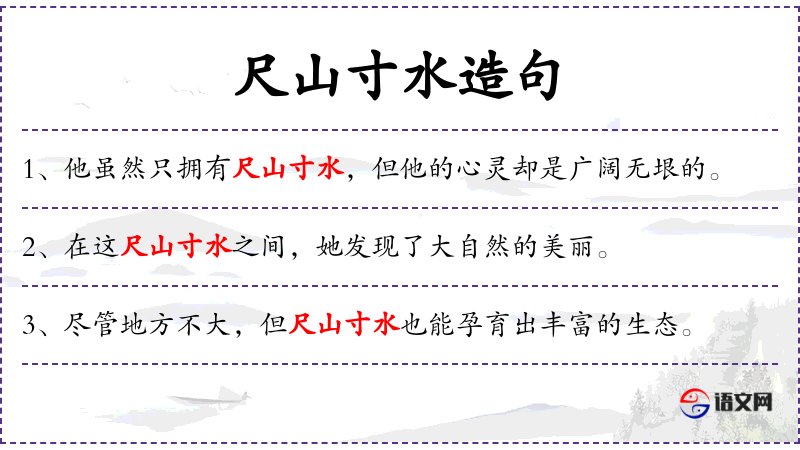 - 尺山寸水:这个成语源自**传统文化,强调小中见大,细节之美。