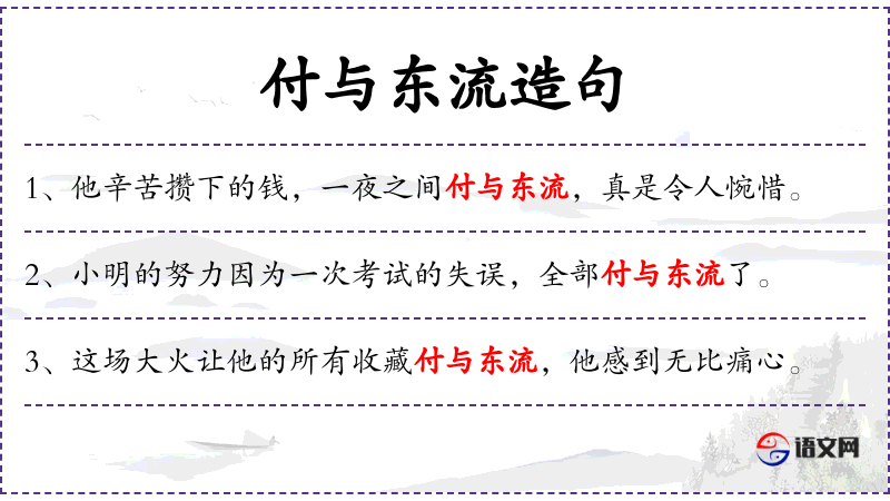 “付与东流”是一个成语,比喻努力或投入白费,没有结果。这个成语在**文化中常用来形容投资或努力的失败。