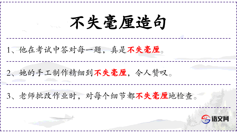 - 不失毫厘:成语,意思是极其精确,没有丝毫差错。