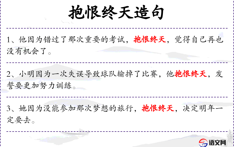 - 抱恨终天:形容非常遗憾,感到终身的悔恨。