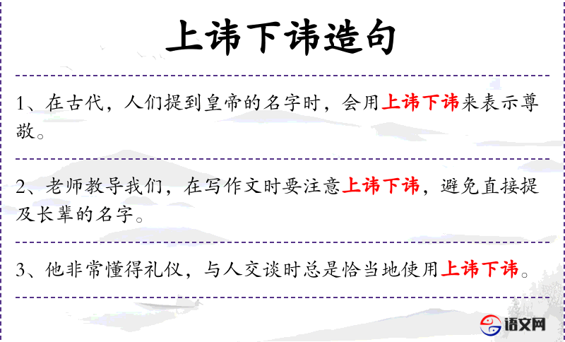 1. 【上讳下讳】 - 旧时称先人,不直呼其名,每曰上讳某﹑下讳某。上讳即名之上一字,下讳即名之下一字。