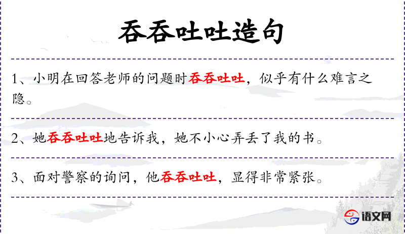- 吞吞吐吐地:副词短语,形容说话不流畅、犹豫不决的样子。