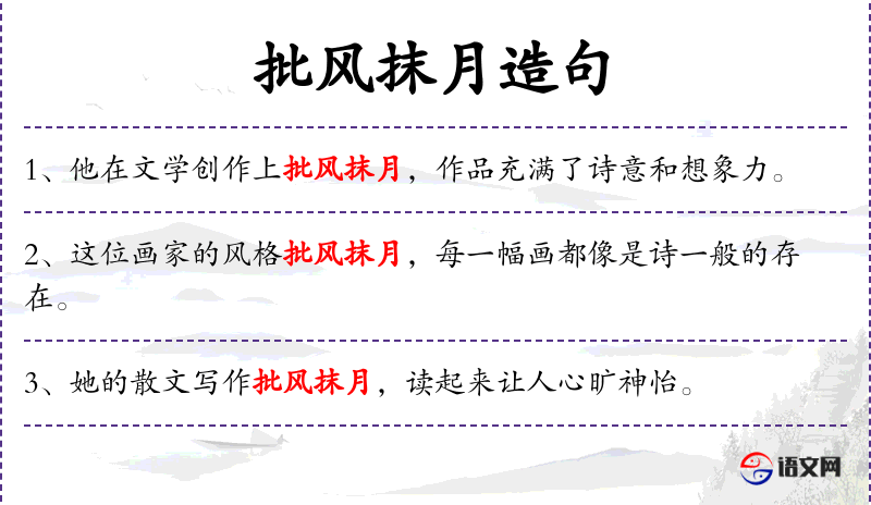 - 批风抹月:这个表达可能源自**古典文学,强调艺术创作中的精细和美感。