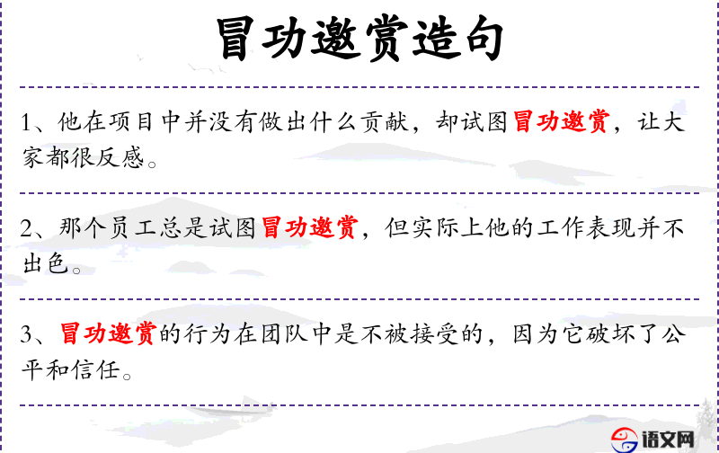 - 冒功邀赏:夸大自己的功劳以获取奖励。