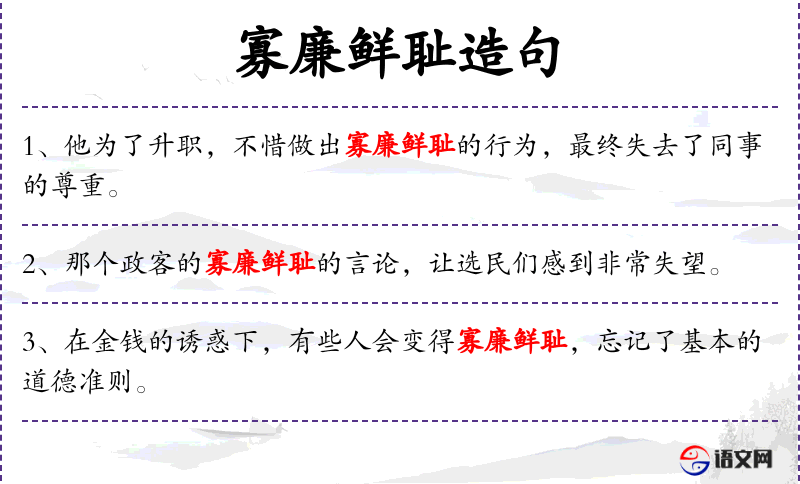 - 原句:他为了升职,不惜做出寡廉鲜耻的行为,最终失去了同事的尊重。