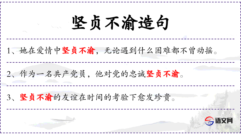 - 坚贞不渝:坚定不移、忠诚不二