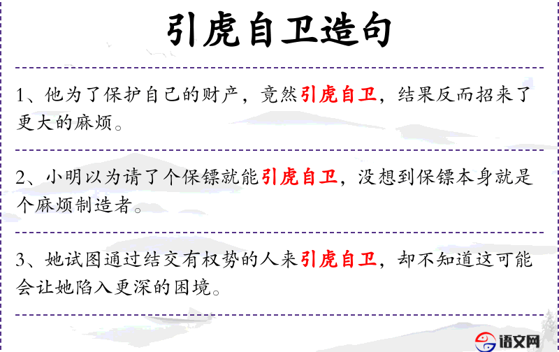 - “引虎自卫”是一个成语,反映了人对于策略和后果的思考。