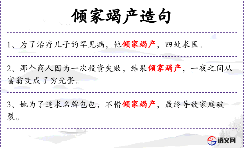 - “倾家竭产”这个成语强调了牺牲的巨大程度。