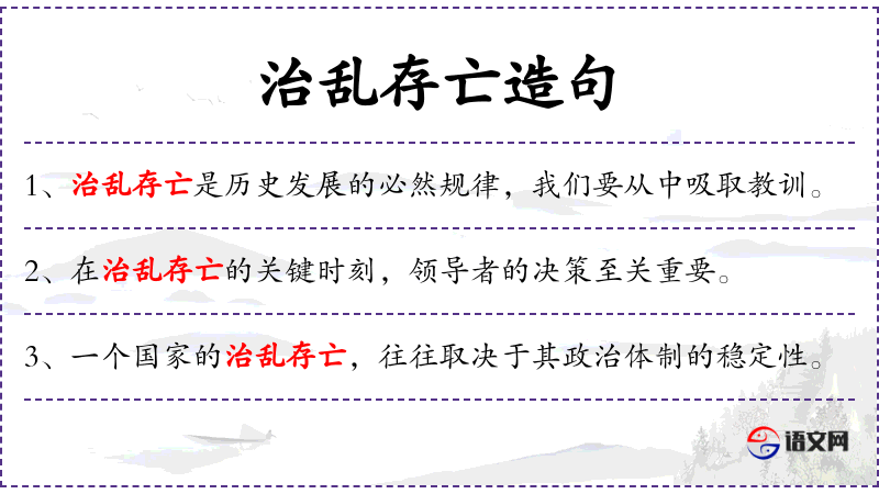 2. 【治乱存亡】 - 安定、祸乱、存续、灭亡。指国运的各种情况。