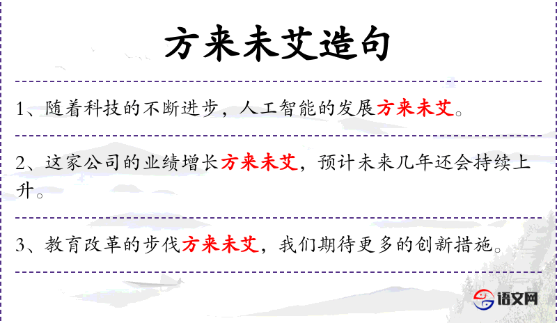 - 方来未艾:意为正在进行中,尚未结束。