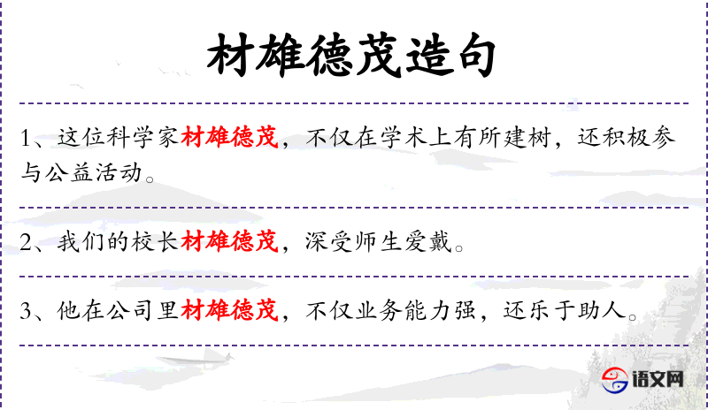 7. 【材雄德茂】 指才德杰出。