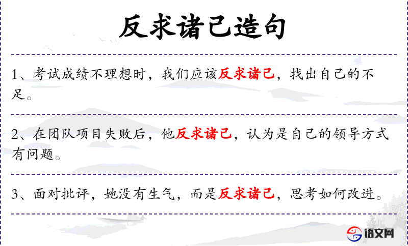 - 反求诸己:成语,意思是反过来从自己身上找原因或解决问题的方法。