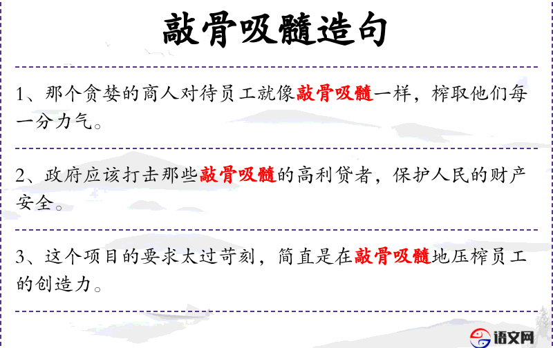 - 成语:敲骨吸髓,源自**古代,形象地描述了极端的剥削行为。