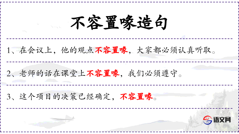 - 成语:“不容置喙”体现了**文化中对权威和结论的尊重。
