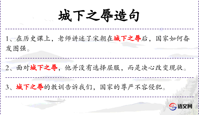 - 城下之辱:源自**古代战争文化,指在战争中被迫投降或接受不平等条件后的羞辱。