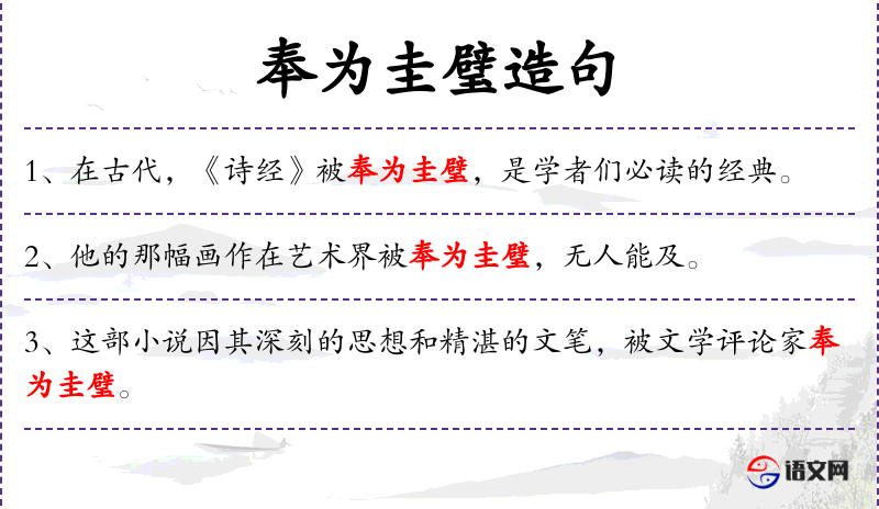 - 奉为圭璧:比喻极为推崇和尊重,圭璧是古代玉器,代表珍贵和尊贵。