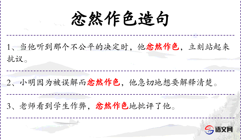 - 成语:忿然作色,源自**古代文学,形容愤怒时的表情变化。