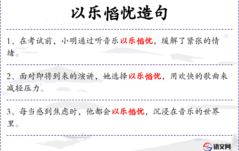 - 以乐慆忧:用快乐来掩盖或减轻忧愁。