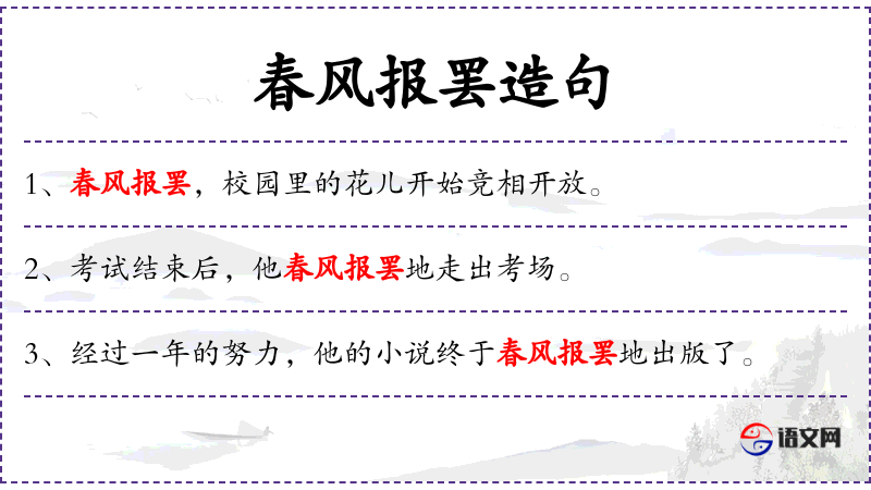 - 状语:考试结束后、春风报罢地