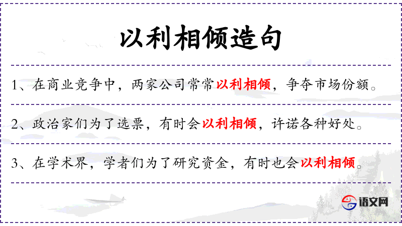 在实际交流中,这种句子可能用于分析政治策略或评论候选人的行为。句子中的“以利相倾”暗示了一种为了个人或党派利益而采取的策略,可能带有一定的贬义。