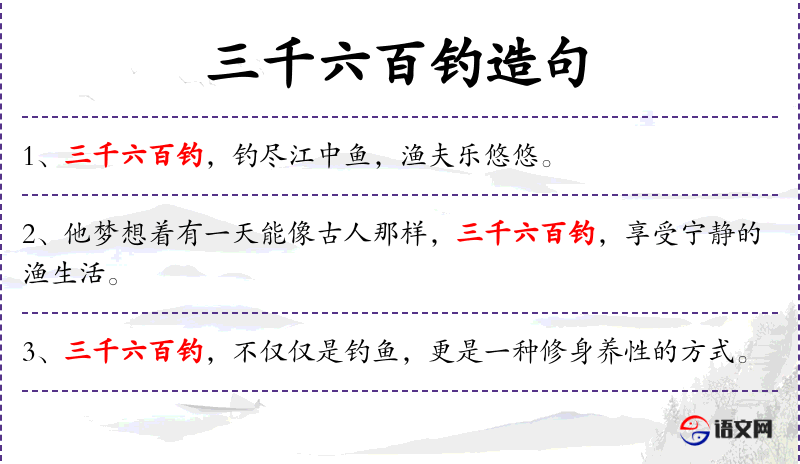指吕尚钓于渭滨遇文王事。相传吕尚(俗称姜太公)年七十钓于渭水之滨,八十岁遇文王,举而用之,其间共十年,故称"三千六百钓"。事见《史记.齐太公世家》。