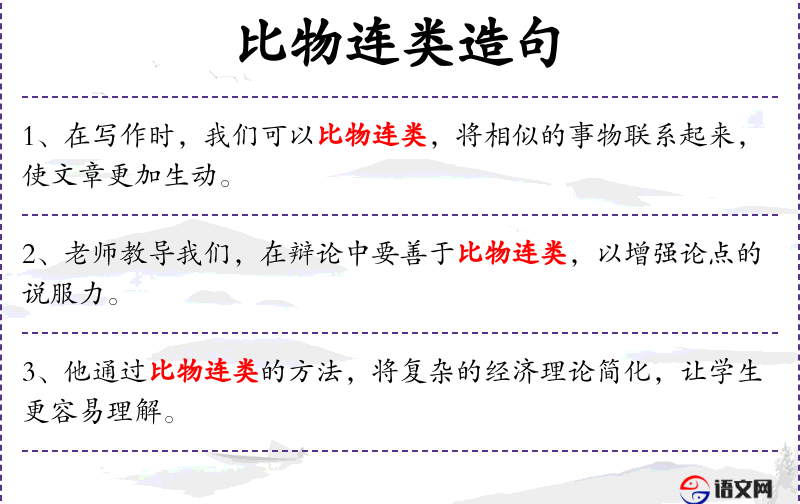 1. 【比物连类】 - 连:连缀。连缀相类的事物,进行对比。