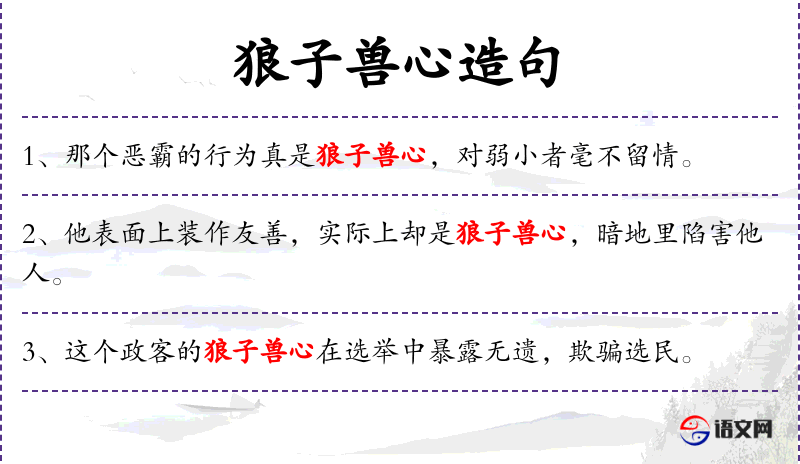 2. 【狼子兽心】 - 比喻凶暴的人用心残忍,有如野兽。