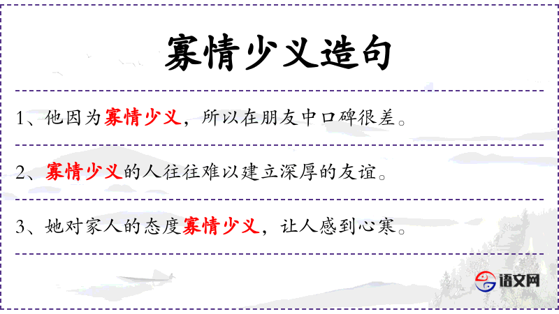 - 寡情少义:形容词短语,意为缺乏情感和正义感。