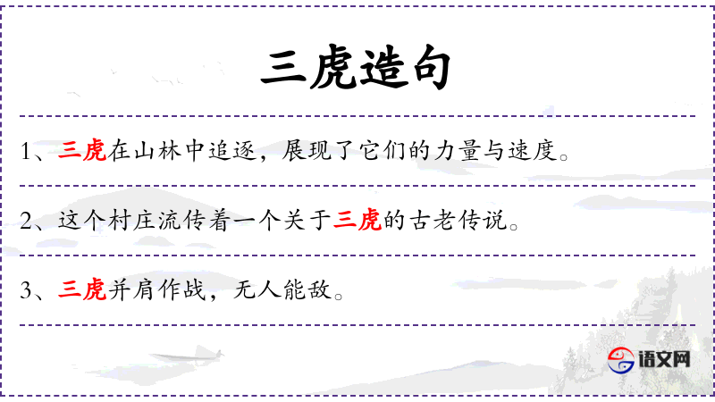 1. 【三虎】 - 虎为猛兽,"三虎"喻同时以雄杰着称的三人。指东汉贾彪兄弟三人; 虎为猛兽,"三虎"喻同时以雄杰着称的三人。指宋代杨纮﹑王鼎﹑王绰三人; 指三个凶恶如虎的人。