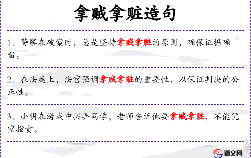 - 家长在教育孩子时,特别强调“拿贼拿赃”这一原则,以此来塑造他们正确的价值观。