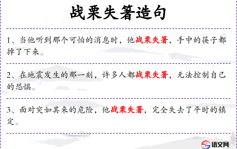 1. 【战栗失箸】 战栗:恐惧的样子;箸:筷子。害怕得连手里的筷子都掉了。形容吓得失去了常态