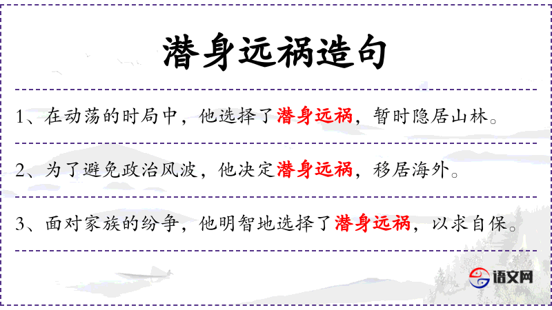 3. 【潜身远祸】 - 指隐藏潜伏,远避祸害。